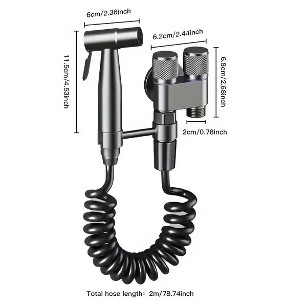 Ovaj ručni bide omogućava precizno i nežno ispiranje, uz kontrolu pritiska vode prema vašim potrebama. Savršen za ličnu higijenu, čišćenje toaleta, kupanje kućnih ljubimaca ili ispiranje pelena i posuda.