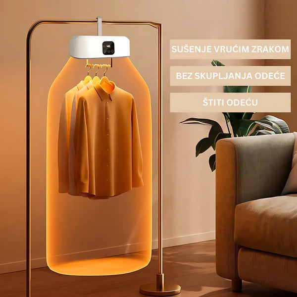Ovaj uređaj koristi cirkulaciju toplog vazduha da brzo osuši odeću, bez potrebe za tradicionalnim sušenjem po sobi. Sušenje traje kraće, a odeća ostaje ravna i bez nabora.