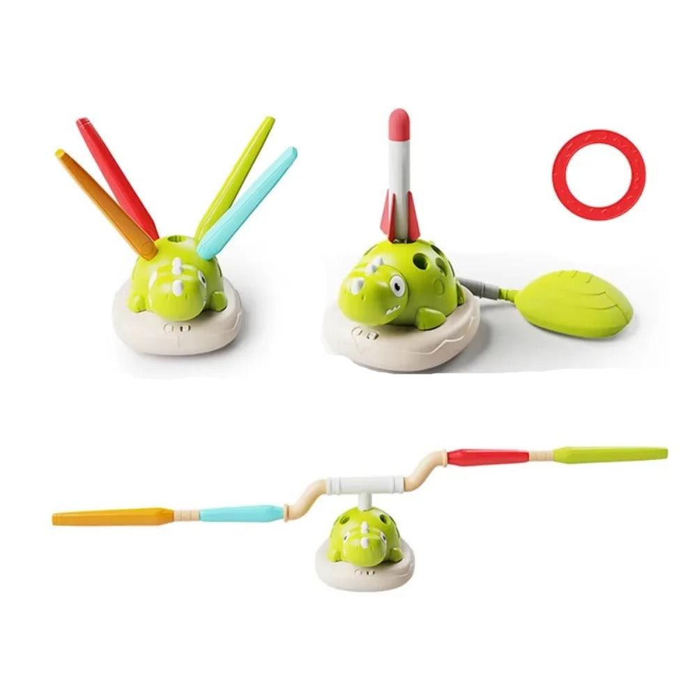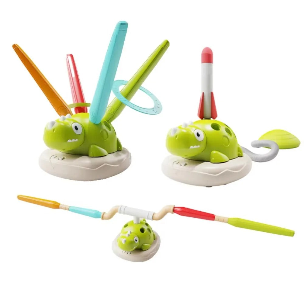 - Lansiranje raketa: Dinosaurus se pretvara u lansirnu platformu za penušave rakete, pružajući uzbudljive avanture i podstičući razvoj snage i koordinacije.