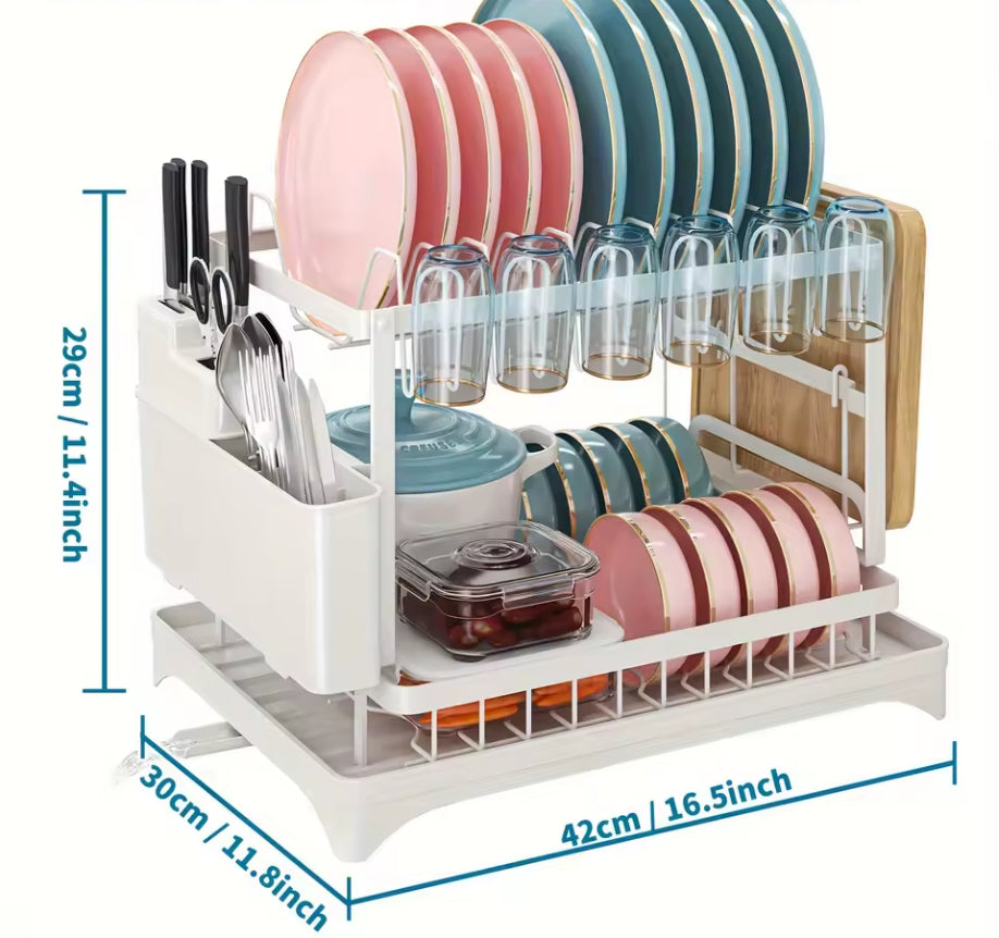 Više ne morate da balansirate tanjire i čaše kako biste ih osušili! Naš stalak za sušenje posuđa omogućava vam da sve uredno složite na jednom mestu, dok se voda prirodno sliva direktno u sudoperu. Uštedite prostor i održite kuhinju organizovanom bez stresa!